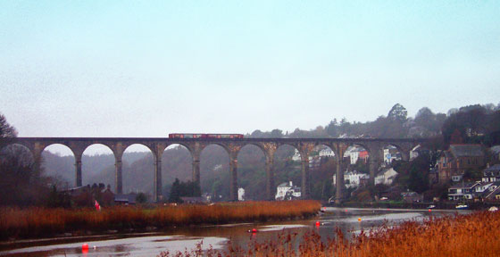 Information board on the wildlife walk The Smithy, where we stayed, has a sitting room/kitchen, double bedroom with en suite bathroom and ‐ perhaps its crowning glory ‐ a verandah that’s an ideal place to eat, read or simply enjoy the view, whatever the weather. While its status as a listed building ensures that it retains much of its original workaday external appearance, inside it’s a gem with heated slate floors, a wood-burning stove and a careful craftsmanship and use of space that reveals Nick’s trade as a boatbuilder. While my enquiry as to the availability of a broadband connection was met by a chuckle, the more important considerations are fully met ‐ effective heating, plenty of hot water, good quality bedlinen and towels, dry logs and a full complement of kitchen equipment. You reach Okel Tor from Gunnislake, ending up on the little lane over the level crossing. The final stretch is on a downhill woodland track that might challenge a low-slung car. Carry on down the track for a couple of hundred yards and you reach a direct lane into Calstock, or you can walk along a broad curve of riverbank. Either way, it’s no more than a 15-minute walk. Calstock in December is pretty (and pretty quiet), but the area is getting quite a foody reputation and while the Tamar Inn provided excellent ham, egg and chips for lunch, the Boot Inn is highly recommended for more ambitious eating. And if you really want to push the boat out, the Horn of Plenty, a few miles away at Gulworthy, has a reportedly well-deserved Michelin star. The soaring railway viaduct dominates views of Calstock. It seems a bit wasted on a single-track branch line, but no one should miss a trip across it. We took the train into Plymouth, which takes about 40 minutes and provides wonderful views not only across the viaduct but further down the river as it is joined by the Tavy, streaming down from Dartmoor. It broadens into an estuary, passing beneath the twin Tamar bridges (Brunel’s rail masterpiece and the 1960s road suspension bridge) and then through Devonport into Plymouth. In summer, you can do the trip one way by river cruiser, the other by train.