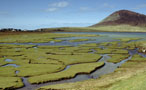 The famous grasslands of Harris's coastal valley -–a breeding ground for wading birds The main road through Harris passes the bays of Losgaintr (pronounced ‘Luskentyre’) and Taobh Tuath, both famous for the rare grasslands – machair – of Harris's coastal valleys. Hundreds of wading birds breed here, and golden eagles, and even the incredibly elusive sea eagle, can be seen. At dusk, you may hear the rasping rattle of the corncrake. Extinct in mainland Britain, it inhabits the wetlands of Lewis and Harris. Further around the coast, sits the stark and remote church of St Clement, thought to have been a religious site for at least 1500 years. The present church is 15th century and contains some of the finest mediaeval sculpture in the islands. Yet the magic of these islands doesn't lie in the sights, or even the scenery, but in that unique sense of place that is about warm hospitality, individuality and, for the southern visitor, a little frisson of adventure from a place that should be familiar, but isn’t.
